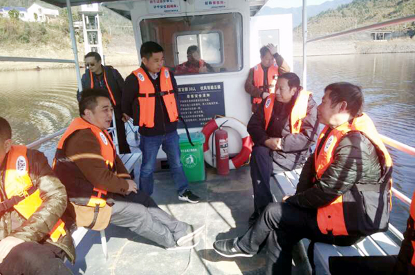 徐教凡一行先后来到湿地公园管理服务区办公区水库大坝等地,随后乘船察看黄金洞水库。