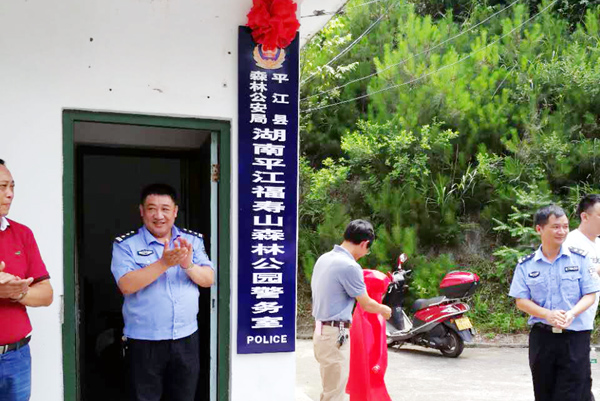揭牌仪式上,福寿山森林公园主任邹俊湘发表了热情洋溢的讲话。他说,近年来,随着福寿山旅游基础设施的不断完善,旅游综合条件越来越好,前来观光旅游的游客也越来越多,景区治安管理、防火压力明显增大。警务室的成立是县公安部门和县林业局党委对福寿山的关心关爱和支持。警务室成立以后,将会使得公园管理更加规范,法制更加健全,森林资源得到更加保护、林区社会更加安全稳定,对景区发展起到保驾护航作用。