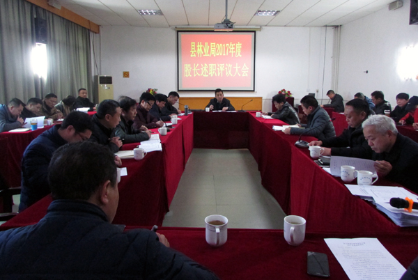 1月19日全天,县林业局在局六楼会议室召开2017年度股长述职评议大会,会议由局党组副书记、副局长李拥军主持,局领导班子、各股室长参加了会议。