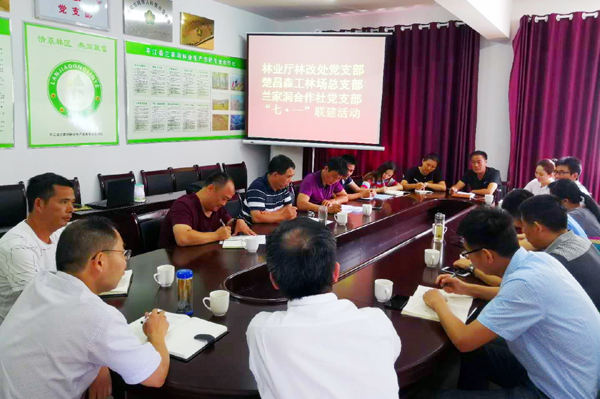 "七一"建党节前夕,省林业厅林改处处长蒋红星、副处长张式楷率处党支部全体党员,赴平江县楚昌森工林场和瓮江镇华门村开展支部联建活动,市林业局副调研员姜国强、林改科负责人应邀参加活动。